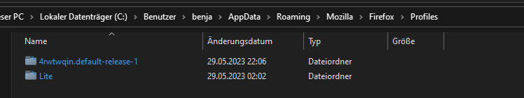 Der andere Screenshot ist im Ordner C/Users/AppData/Roaming/Mozilla/Firefox/Profiles