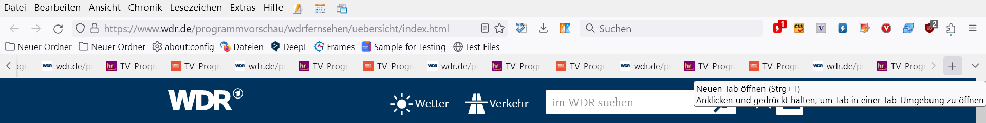 Hi, kann mir vielleicht jemand helfen. Ich habe vorhin das Update auf die neue Firefox Version durchgeführt. Tabs nach unten habe ich schon wieder hinbekommen aber jetzt fehlt mir noch das + Zeichen in der Tab Leiste (ganz rechts) also das + um einen neuen Tab zu öffnen. Was ich schon rausgefunden habe, wenn ich ein neues Fenster öffne also Firefox neu starte, dann ist das + da aber nur bis zum 21. Tab. Ab dem 22. Tab ist das + wieder weg. Kann ich das irgendwo einstellen dass es immer da bleibt. Vor dem Update ging es auch, egal wieviele Tabs ich geöffnet habe.