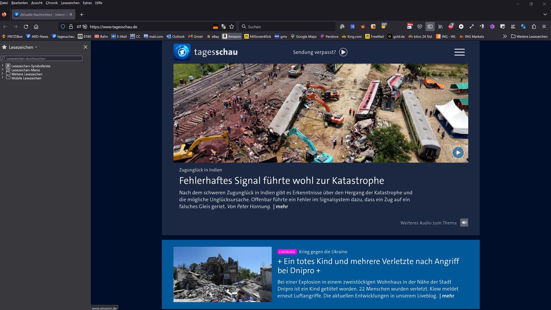 Die vier Menüs in der Sidebar sind nach dem ersten Start von Firefox unempfänglich gegen Klicks. Alle übrigen Links in den Menüleisten funktionieren hingegen einwandfrei. Erst nach einem zweiten Start bzw. Betätigen des "Sidebars anzeigen"-Buttons geht's wieder wie gewohnt: Das Lesezeichen-Menü ist dann automatisch geöffnet.
