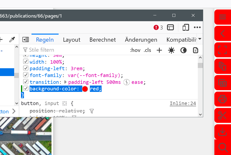 Setze ich die Änderung in die Entwickler-Werkzeuge, dann passiert gar nichts.