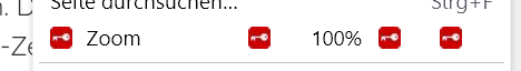 Alles anzeigen/* Zoom */ #appMenu-zoom-controls::before { margin-top: 3px !important; margin-right: 10px !important; content: '' !important; width: 16px !important; height: 16px !important; background-image: url("../icons/Zoom-2.png"); } /* Verkleinern */ #appMenu-zoomReduce-button2::before { margin-top: 3px !important; margin-right: -18px !important; content: '' !important; width: 16px !important; height: 16px !important; background-image: url("../icons/zoom-reduce.png"); } /* Vergrößern */ #appMenu-zoomEnlarge-button2::before { margin-top: 3px !important; margin-right: -18px !important; content: '' !important; width: 16px !important; height: 16px !important; background-image: url("../icons/zoom-enlarge.png"); } /* Fenster im Vollbildmodus anzeigen */ #appMenu-fullscreen-button2:before { margin-top: 3px !important; margin-right: -18px !important; content: '' !important; width: 16px !important; height: 16px !important; background-image: url("../icons/Vollbild-Image.png"); }Zwei weitere Kleinigkeiten an dieser Stelle: Das Lupen-Icon ganz links vor "Zoom" ist zu klein. Es müßte so groß sein wie die anderen beiden Icons. Der ganze Block vom Minus-Icon bis zum Vollbild-Icon war bisher um einen guten Zentimeter nach links auseinandergezogen. Wie kriegt man das hin?