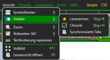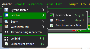Hier als Beispiel für den Menü-Eintrag Ansicht->Sidebar->Lesezeichen (wie oben in den Screenshots)