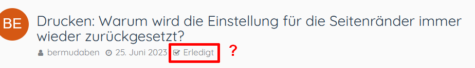 Meistens, wenn ich etwas drucke, egal ob auf Papier oder als pdf, möchte ich die gleiche Einstellung für die Seitenränder verwenden, nämlich 25 mm links und rechts. Ich gehe also im Druckdialog unter "Ränder" auf "Benutzerdefiniert" und stelle 25 mm ein. Trotzdem muss ich bei jedem einzelnen Dokument, das ich drucke, diesen Wert immer wieder neu einstellen. Jedes Mal, wenn ich drucke, ist unter "Ränder" wieder "Standard" ausgewählt, und wenn ich "Benutzerdefiniert" wähle ist wieder 12.7 mm eingestellt. Ist dieses Verhalten von Firefox normal oder müssten meine Werte theoretisch in den Voreinstellungen gespeichert werden? Auf Dauer kann es nerven, immer wieder die gleiche Einstellung vornehmen zu müssen.