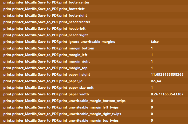 Meistens, wenn ich etwas drucke, egal ob auf Papier oder als pdf, möchte ich die gleiche Einstellung für die Seitenränder verwenden, nämlich 25 mm links und rechts. Ich gehe also im Druckdialog unter "Ränder" auf "Benutzerdefiniert" und stelle 25 mm ein. Trotzdem muss ich bei jedem einzelnen Dokument, das ich drucke, diesen Wert immer wieder neu einstellen. Jedes Mal, wenn ich drucke, ist unter "Ränder" wieder "Standard" ausgewählt, und wenn ich "Benutzerdefiniert" wähle ist wieder 12.7 mm eingestellt. Ist dieses Verhalten von Firefox normal oder müssten meine Werte theoretisch in den Voreinstellungen gespeichert werden? Auf Dauer kann es nerven, immer wieder die gleiche Einstellung vornehmen zu müssen.