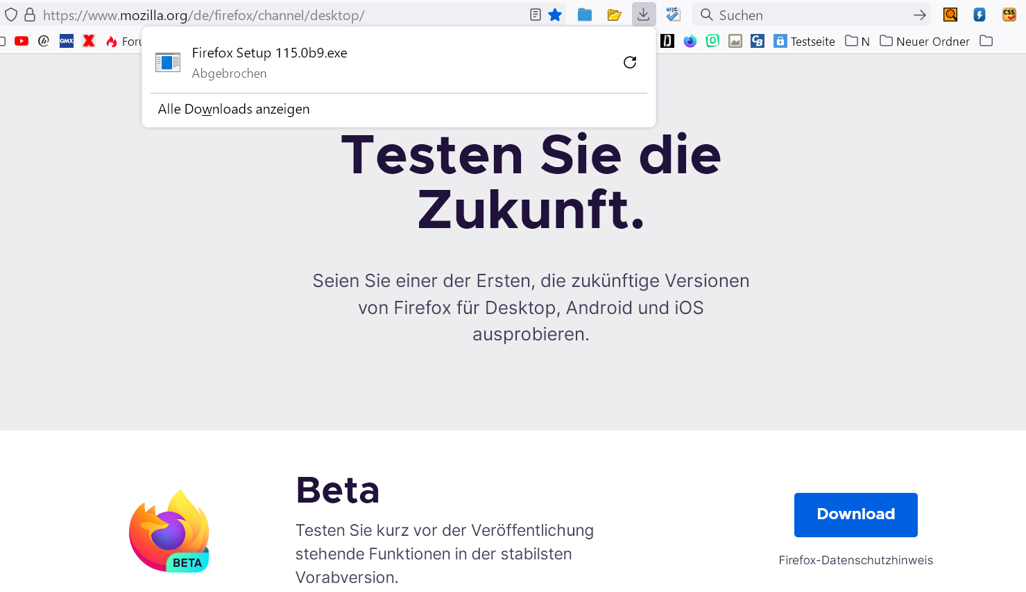 suchst du Firefox 116.0b1?