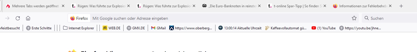 Hallo Leute, bei mir ist das Problem, dass sich, nach einem vergangenem Update, oft ungewollt meherer Tabs öffnen wenn ich einen Artikel zu lesen geöffnet habe. Ich habe schon mehere Einstellung versucht, aber kein hat geholfen. Es passiert also öfters, eventuell wenn beim Lesen über mit der Maus über einen Link fahre, dass dann ei neuer Tab geöffnet wird. Oft muss ich dann etlich Tabs einzeln löschen. Hat jemand für mich eine Lösung? Danke im Vorraus
