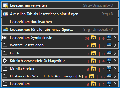 Ich habe mit den Browser-Werkzeugen mal gesucht: Anscheinend liegt es daran, daß die Klasse .menu-accel bei den Lesezeichen standardmäßig nicht mehr angezeigt wird. Wenn ich mir die per CSS wieder einblende, kriege ich zumindest eine der beiden Zahlen wieder dahin, wo sie vorher war... ![]()
