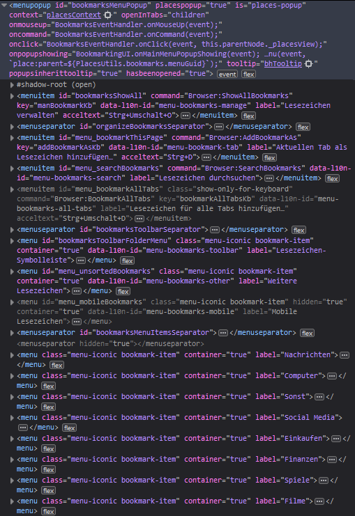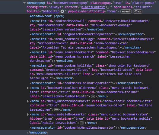 • Das hier reicht nicht, mit Anpassung nur für bookmarksMenu?
