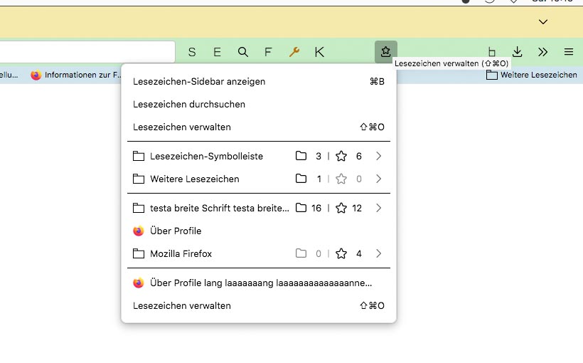 Hier am Mac, für den #bookmarks-menu-button / Lesezeichen-Menü-Button: