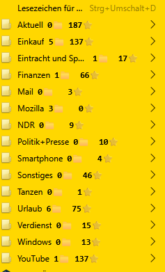 • Aber jetzt gibt es gibt es das Problem plötzlich auch in der Lesezeichenleiste?
