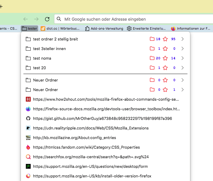 //Zeigt Anzahl der Lesezeichenordner und Links an in Lesezeichenpopups, Basisversion mit eigenen Icons