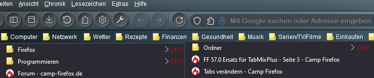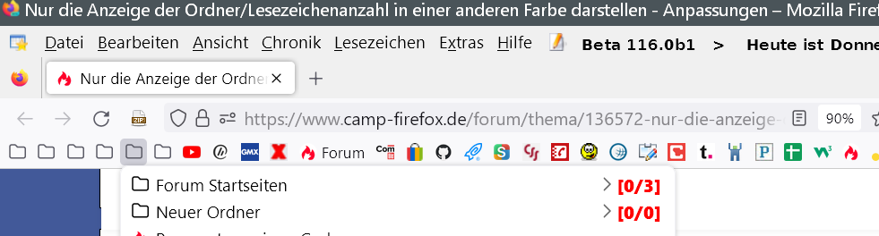 • Ich suche nach einem Weg, nur die Anzeige der Ordner/Lesezeichenanzahl in einer anderen Farbe darzustellen, wie in dem zusammen gebastelten Screenshot.