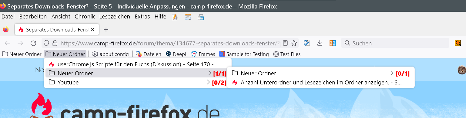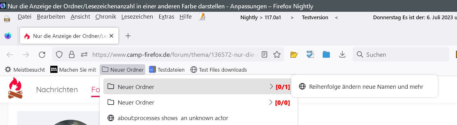 • Ich habe gerade mit folgendem Skript, das im Lesezeichen-Menü die Anzahl der Ordner/Lesezeichen je Ordner anzeigt, herumgespielt...