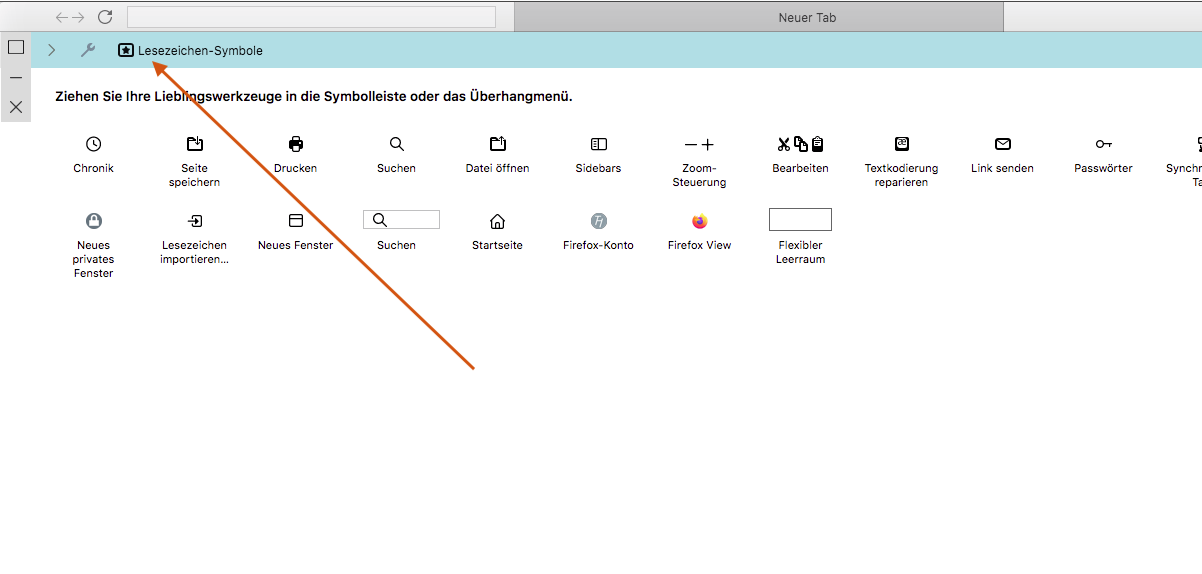 • Das ist für den Lesezeichen Menü Button und sein Popupmenü, den man in Symbolleiste anpassen in die Werkzeugleiste einfügen kann.