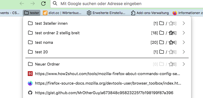 Nur die Anzeige der Ordner/Lesezeichenanzahl in einer anderen Farbe darstellen