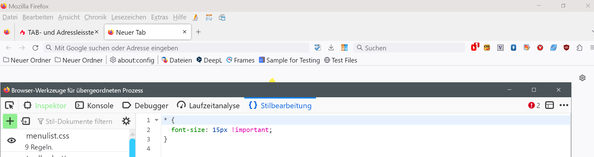 • Es kann ruhig Code für die userChrome sein. Damit kann ich umgehen.