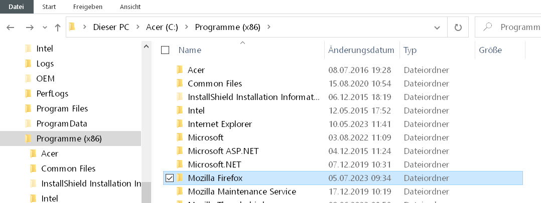 Laut Deinem Screenshot ist das aber nicht der Installationsordner.