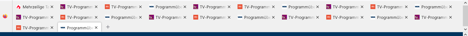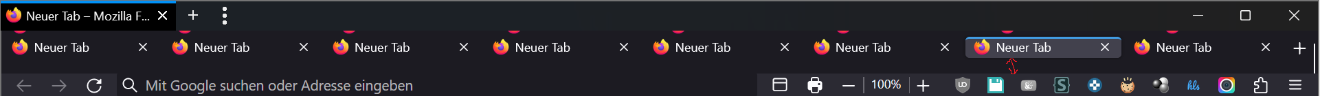 Also wie gesagt: Ich kann mit dem Mausrad scrollen und unterhalb der letzten Tabreihe hat es noch freien Platz, der eben schwarz ist. Dann sehe ich leeren Freiraum. Und manchmal beim löschen von Tabs oder ganzen Tabreihen rutscht mir diese Scrollbox automatisch nach ganz unten (wo eben freier, leerer schwarzer Bereich ist). Dann sehe ich die Tabreihen nicht mehr vollständig.