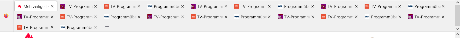 Also wie gesagt: Ich kann mit dem Mausrad scrollen und unterhalb der letzten Tabreihe hat es noch freien Platz, der eben schwarz ist. Dann sehe ich leeren Freiraum. Und manchmal beim löschen von Tabs oder ganzen Tabreihen rutscht mir diese Scrollbox automatisch nach ganz unten (wo eben freier, leerer schwarzer Bereich ist). Dann sehe ich die Tabreihen nicht mehr vollständig.