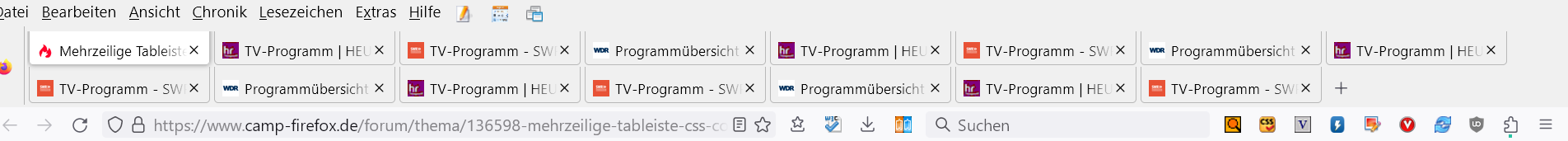 Weil wenn ich mir das Script anschaue, sind das schon seeeehr viele Zeilen. Und ich will eig. nur 2 Reihen an Tabs haben, mehr nicht. Keine speziellen Zusatzfunktionen wie scrollen oder sowas. Daher frage ich mich: Ist das nicht etwas "schlanker" möglich ? Also eben nur mit CSS scripts?