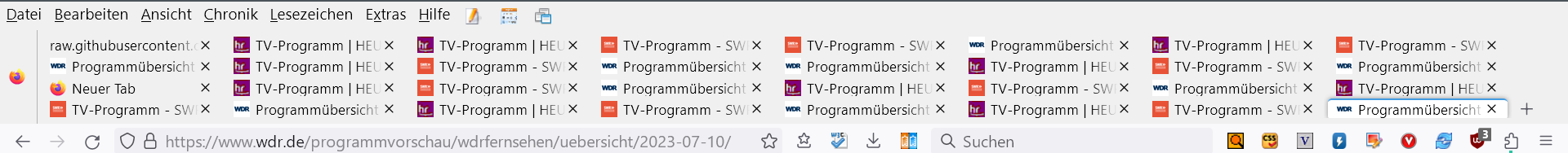 Was ich mich gerade noch frage: Ist es mit CSS technisch möglich, dass sich die Tabbreite folgendermassen verhält: Alle Tabs sollen immer gleich breit sein, sich aber in der Grösse an den verfügbaren Platz in der Leiste oben anpassen. ich nutze oft verschieden breite Fenster. Bei fixen Tabbreiten habe ich dann unter umständen rechts immer leere Bereiche. Nutze ich aber variable Tabbreiten, sind alle Tabs verschieden breit (in den versch. Zeilen). Daher die Idee, dass sie zwar untereinander gleich breit sein sollen, insgesammt aber sich am verfügbaren Platz anpassen sollen in der Breite.