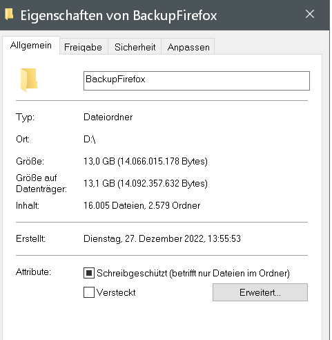 Mein letztes Backup war am FirefoxProfile 08.07.2023 um 17∶00 aber danach hab ich einiges geändert. ![]()