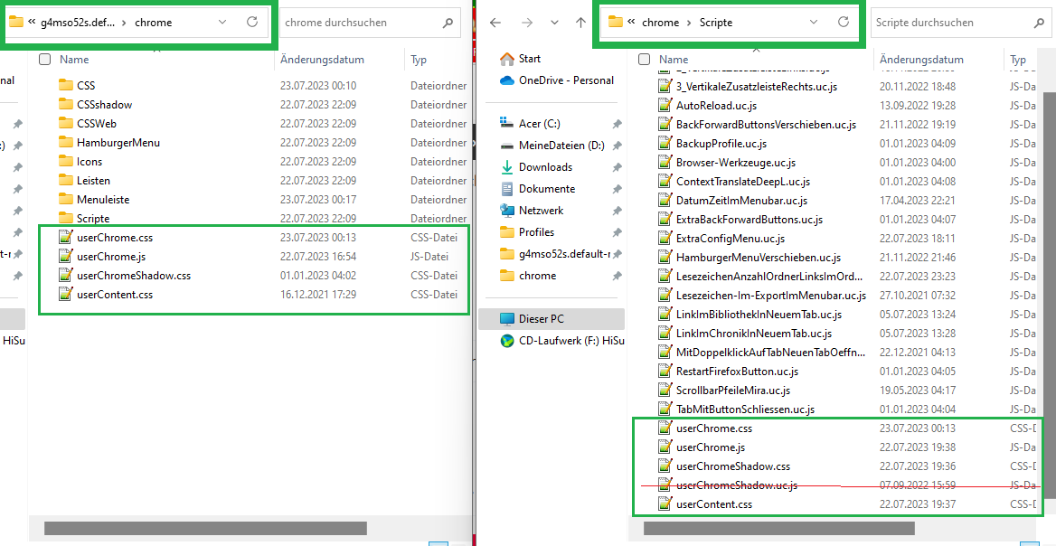 Nun meine Frage: Kann ich jetzt die 4 Dateien (userChrome.css, userChrome.js, userChromeShadow.css und userContent.css) aus dem Ordner "Scripte" löschen?