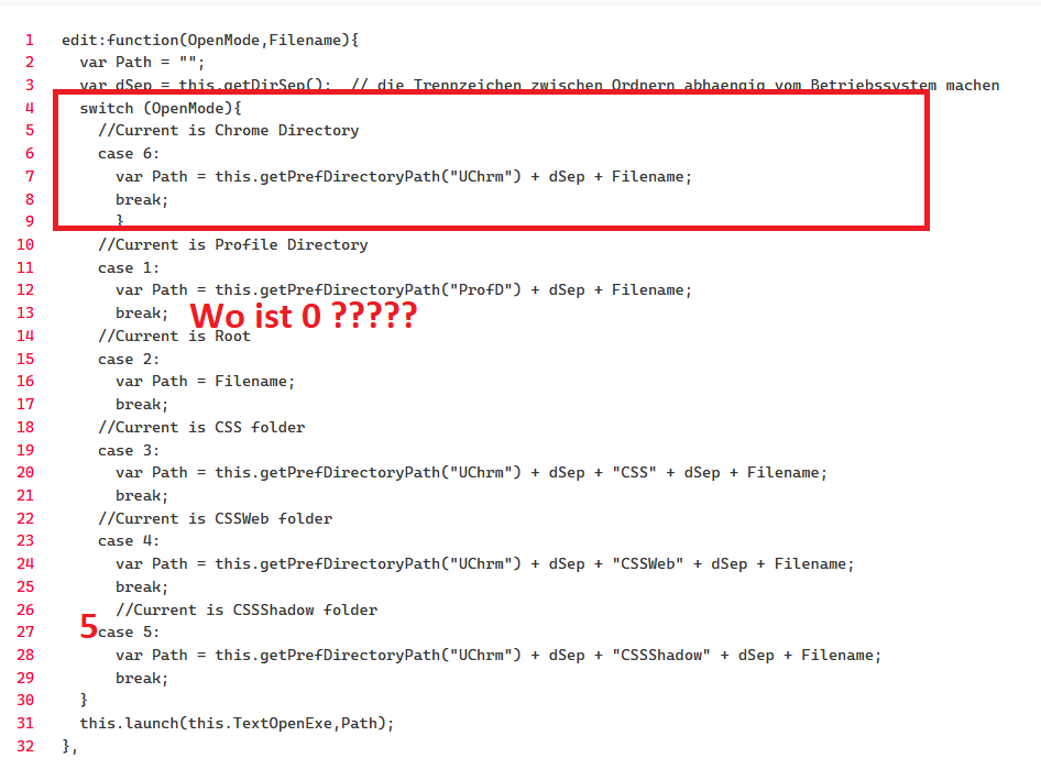 Ca. bei Zeile 180 beginnt ein Absatz mit edit:function(OpenMode,Filename){, in diesem muss ein Nachtrag gemacht werden, der dann so aussieht.