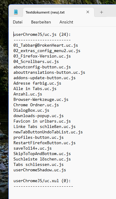 // Arrays (jeweils ein Array fuer uc.js und uc.xul) nehmen Namen der gefundenen Skripte auf