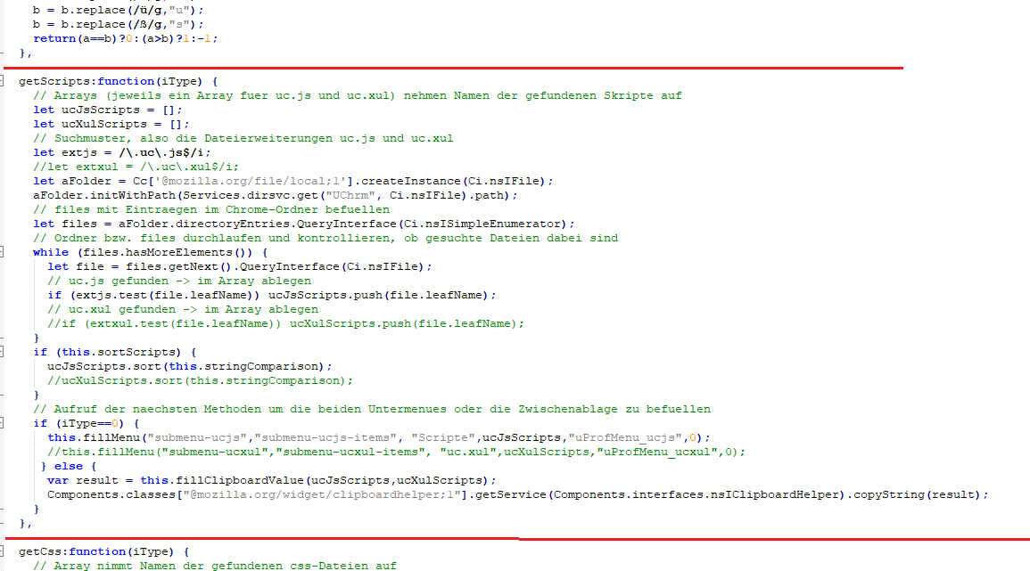 Im Script beginnt der Absatz so getScripts:function(iType) { ( den bitte suchen), in diesem müssen die Änderungen gemacht werden (nur dort). So muss der Eintrag wie im roten Feld dargestellt eingetragen sein. Ich hänge mal dafür den Code zum Kopieren mit ran, achte aber auf die Klammern, Schau es Dir vorher nochmal an.