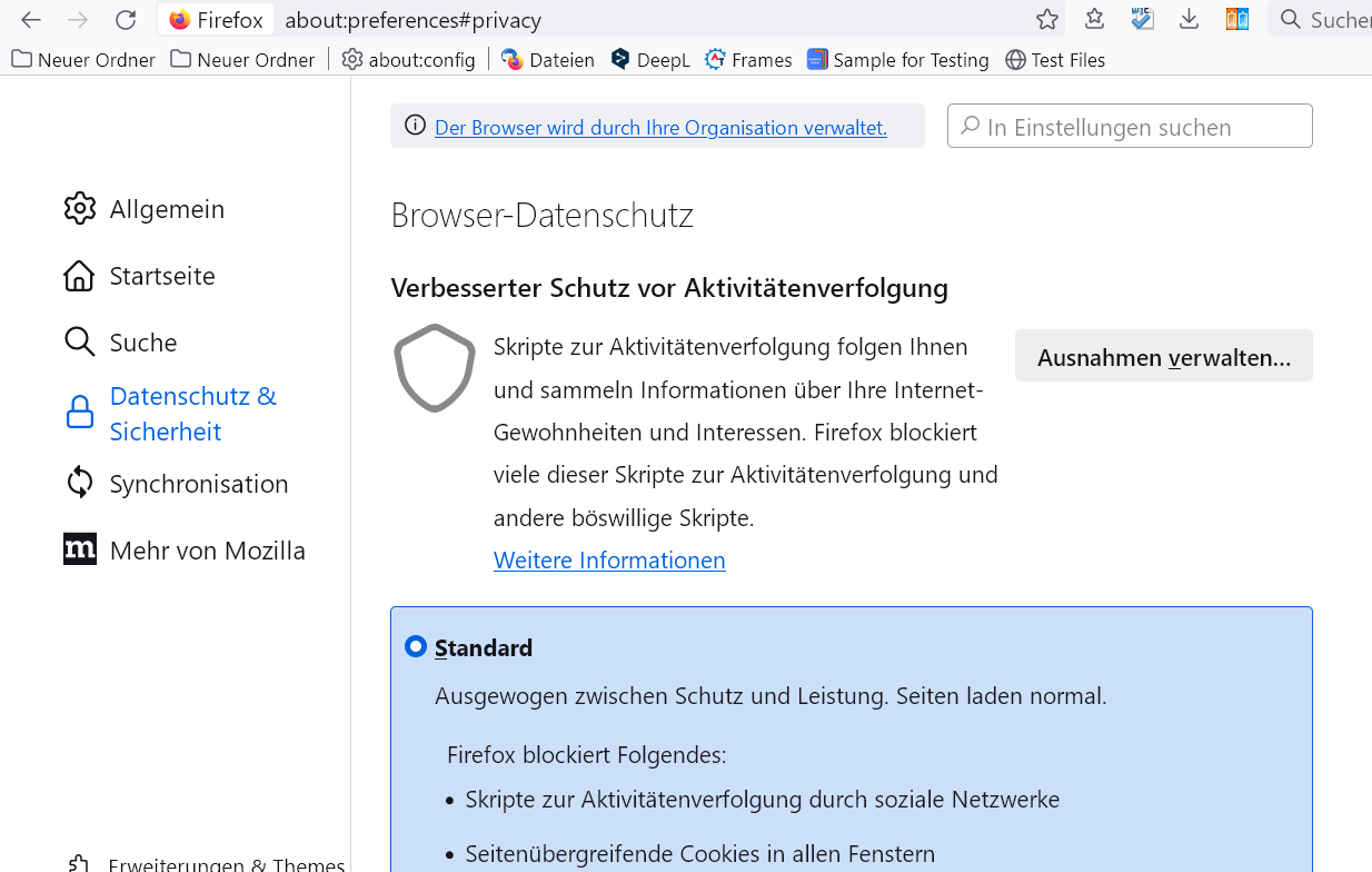 Ich verwende im TB schon länger eine angepasste user.js und da ich nun auch den Firefox verwende will ich auch hier eine user.js verwenden. Allerdings gab es mit Version 115 doch einige Änderungen. Daher die Tipps von Privacy-Handbuch oder auch arkenfox laufen diese oder müssen die alle angepasst werden?