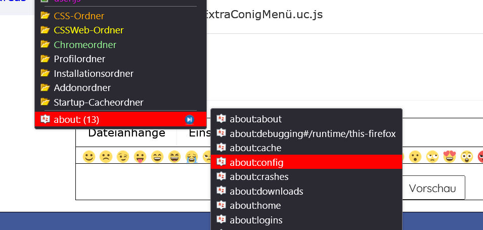 Und jetzt hab ich bemerkt, dass ich das garnicht brauche. Mittelklick auf das ExtraConigMenü.uc.js macht das Gleiche wie dieses Script. ![]()