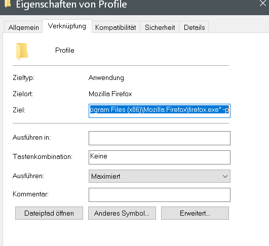 "C:\Program Files (x86)\Mozilla Firefox\firefox.exe" -no-remote -P "Firefox" (Profilmanager )