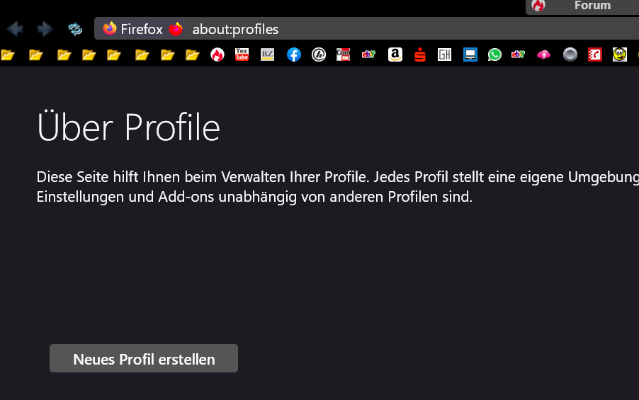 einfach gesagt. Firefox neu installieren und dann über den Profilmanager meine drei Profile anlegen und über Appdata dann die kopierten Profile wieder einfügen. So habe meine alten Lesezeichen und Einstellungen in den jeweiligen Profilen wieder.
