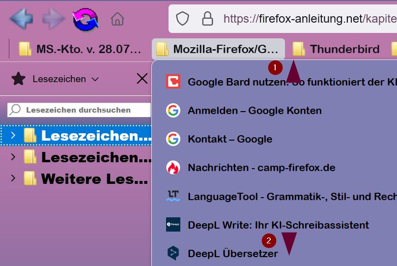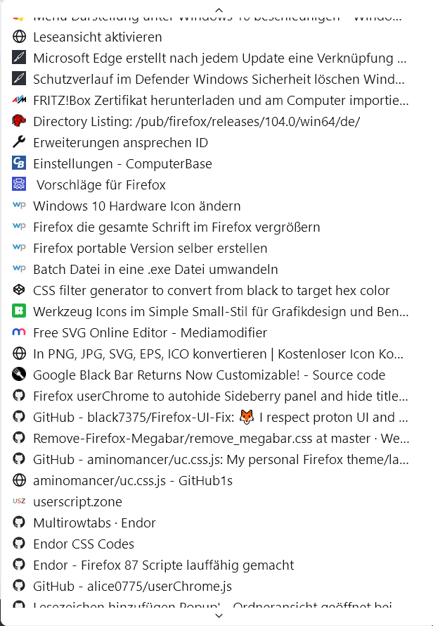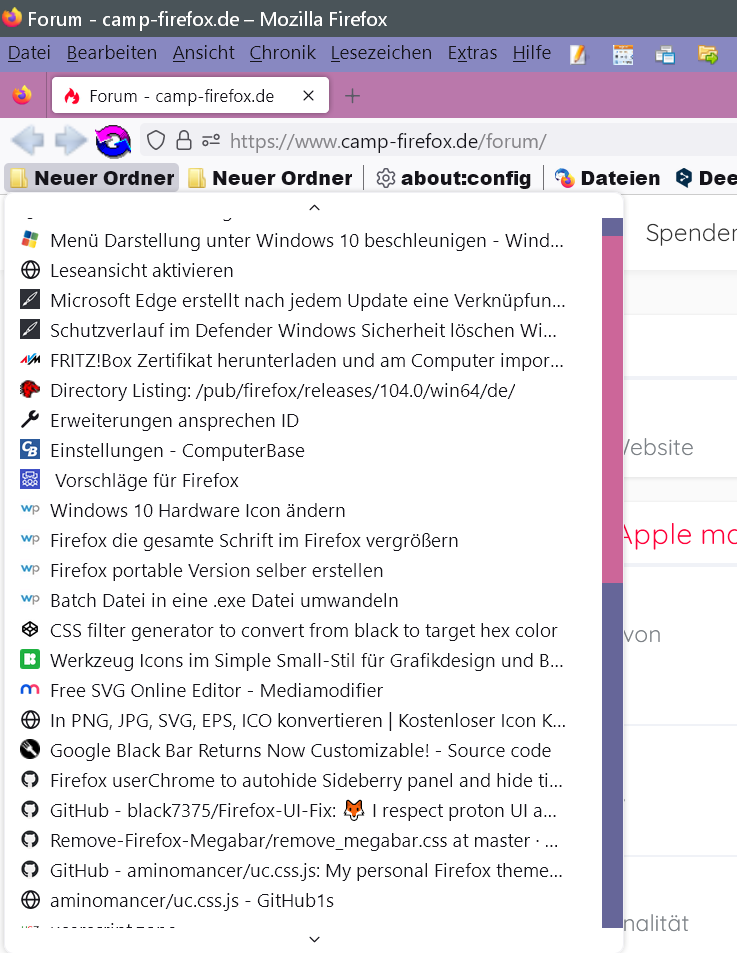 In Firefox-Symbol-Leiste habe ich oben diverse Ordner (u.a. als Beispiel: Mozilla-Firefox(G...).