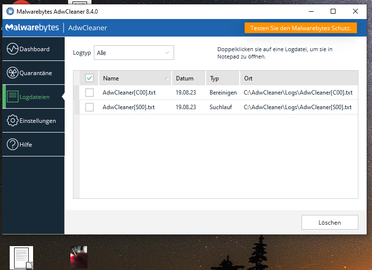 Anbei die schreenshor´ts von adwclneaer. Der scheintetwas gefunden zu haben. Ich werde in Quarante schieben, nachden ich dieses Antwort abgeschickt habe, weil er alle Prozesse abschließt.