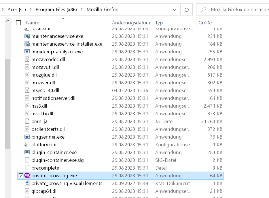 2002Andreas Unter Linux gibt es keine exe-Dateien. Aber ich habe mal die -tar.bz von Firefox 117 entpackt, es gibt keine Datei mit einem ähnlichen Namen.