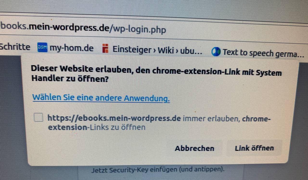 der login geht nicht mehr beer fidostick es kommt immer chrome-extension-Link mit System Handler zu öffnen