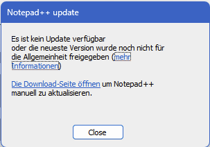 • Ich "installiere" nur von Hand, sorry, kann dir zum Updater gar nicht helfen. Aber auch hier sagt die Prüfung - aktuell wäre 8.5.6. Da NPP hier speziell angepasst ist, kann ich die Updates eh so nicht nutzen.