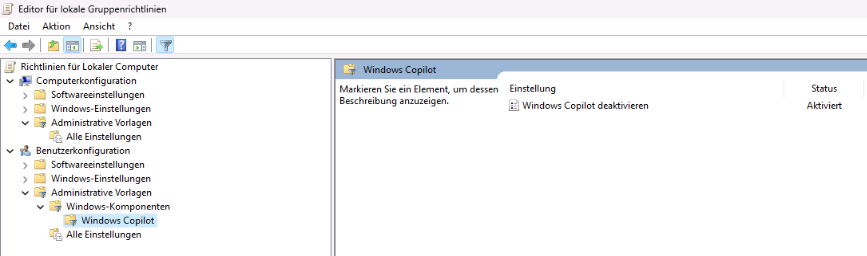 Ich könnte mal nach der/einer GPO-Regel dafür schauen, die ich parallel lade und nutze.
