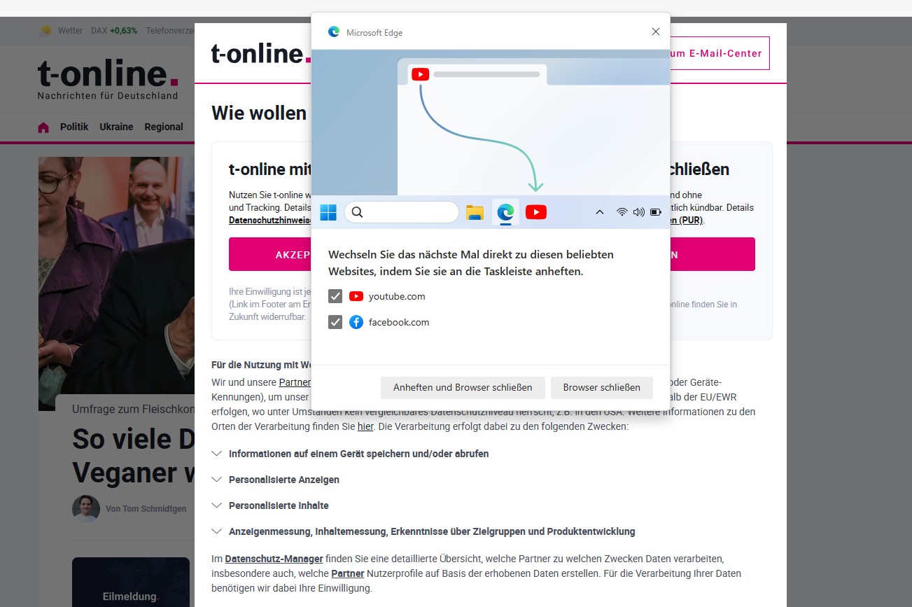 Bekommt hier sonst noch jemand unregelmäßig (in den letzten Wochen gefühlt deutlich häufiger) beim Schließen von Edge eine Meldung ob man denn nicht zwei Links zu youtube und Facebook als LZ (oder so ähnlich) setzen lassen möchte angezeigt?