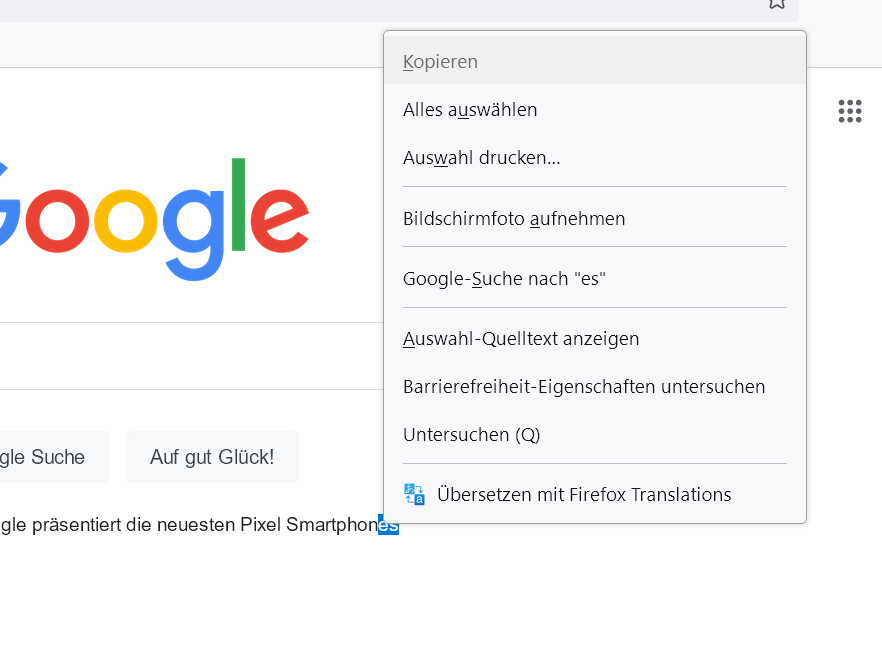 • Wenn ich auf "Erste Schritte" Lesezeichen klicke und dann wieder auf das Haus Symbol (google.de) kann ich sogar auf der google Seite nichts kopieren zb. den Text unter der Google Suche. Video folgt