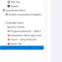 - Der Ordner "Lesezeichen-Menü" in der Sidebar bleibt leer