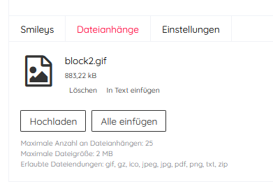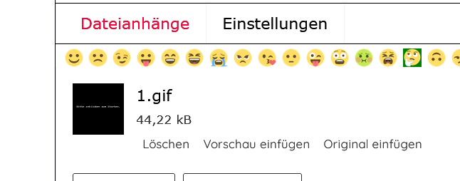 Ist es normal, dass es für hochgeladene Gifs jetzt nur noch die Option "In Text einfügen" gibt?