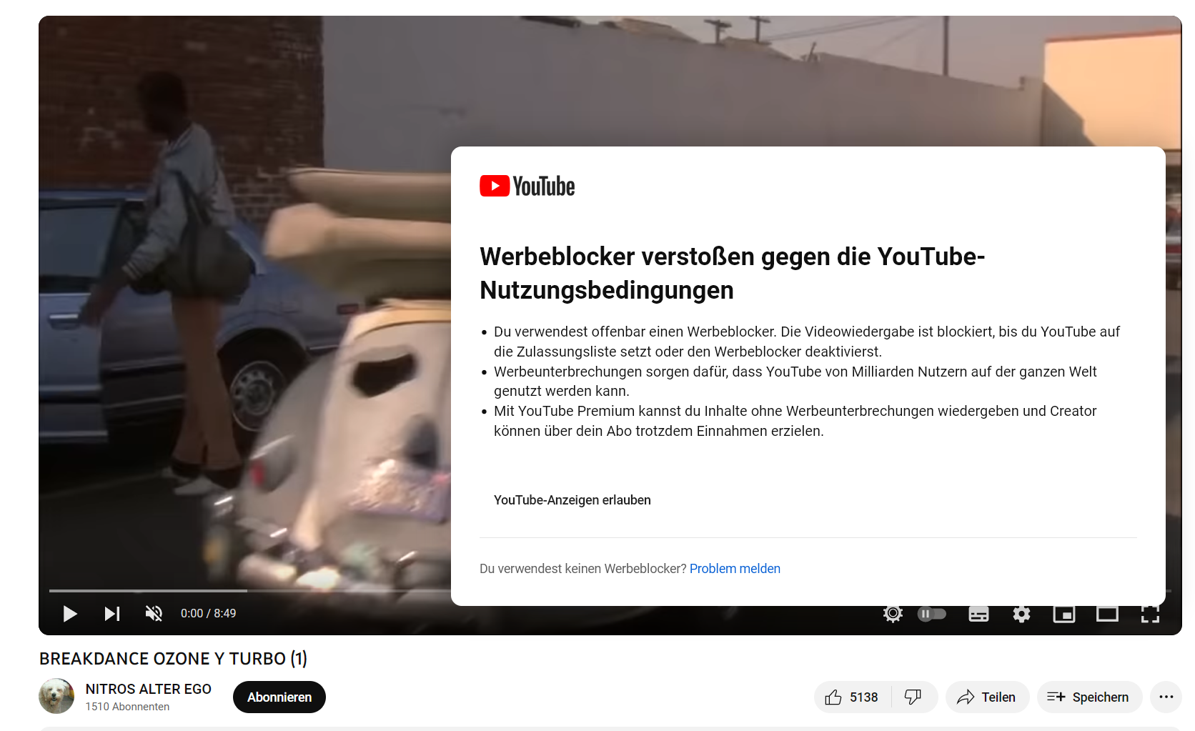 • Der Hinweis kommt bei mir nur, wenn ich bei youtube angemeldet bin.