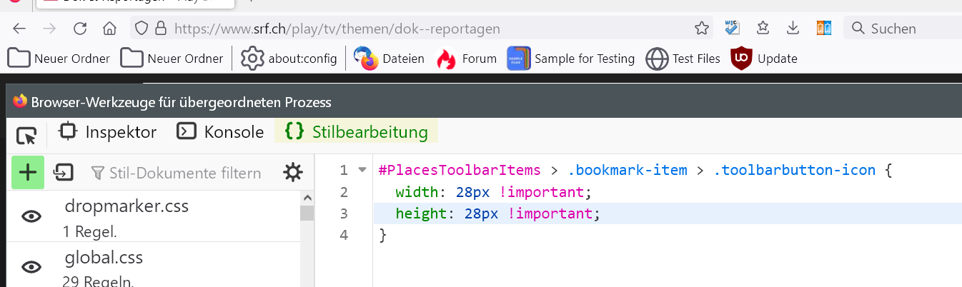 Größe der Symbole in der Lesezeichen-Sysmbolleiste