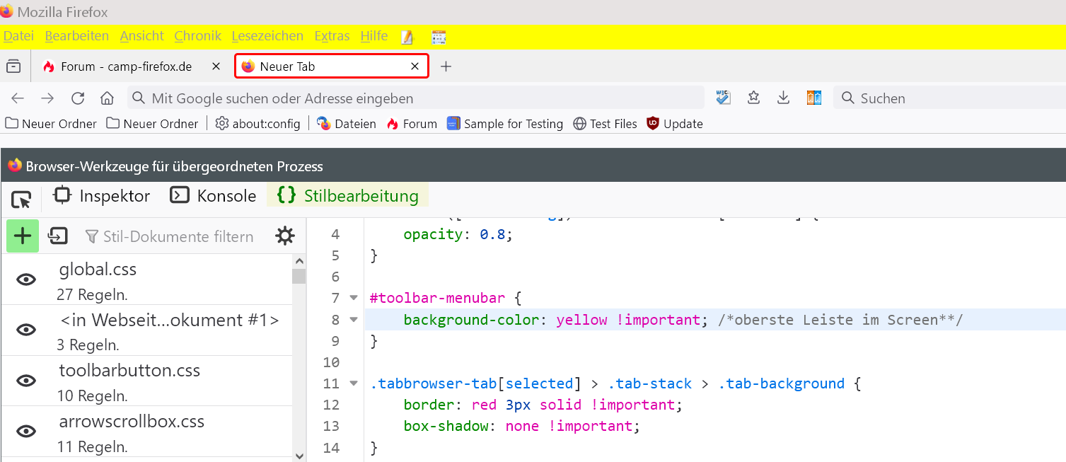 background-color: yellow !important; //*oberste Leiste im Screen**//