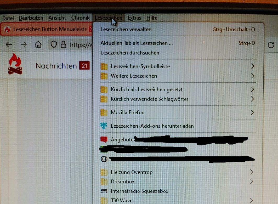 Wenn ich auf Lesezeichen in der Menueleiste klicke werden mir die Lesezeichen angezeigt!
