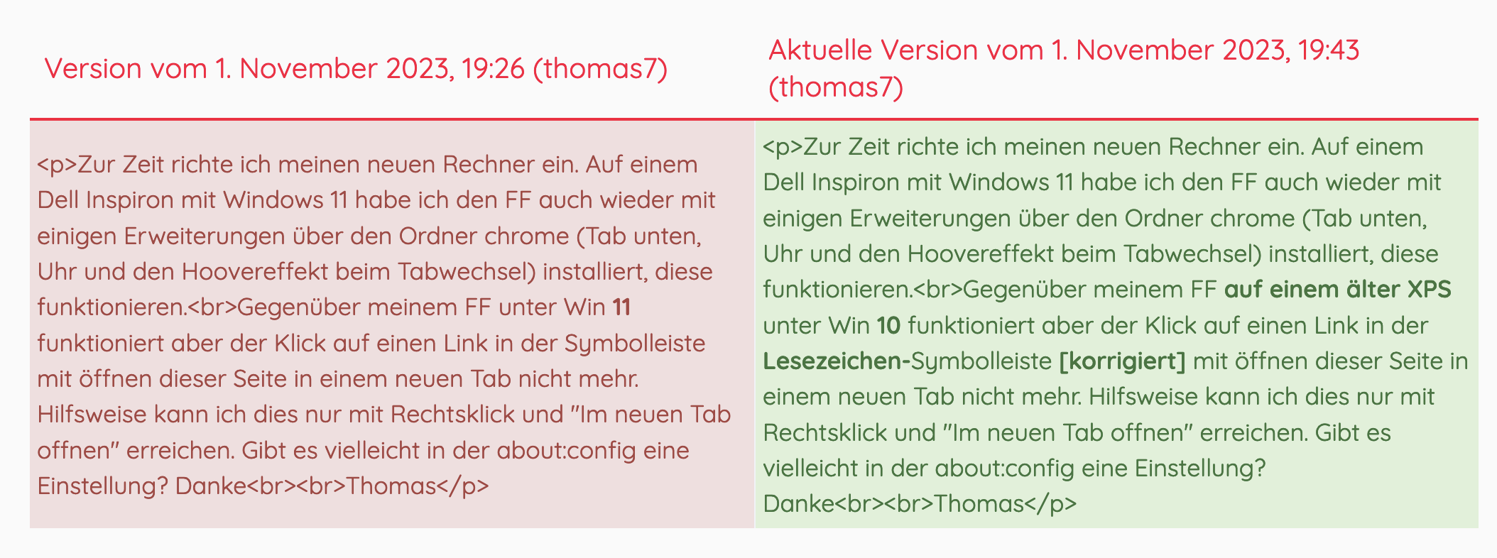 • Gegenüber meinem FF auf einem älter XPS unter Win 10 funktioniert aber der Klick auf einen Link in der Lesezeichen-Symbolleiste [korrigiert] mit öffnen dieser Seite in einem neuen Tab nicht mehr.