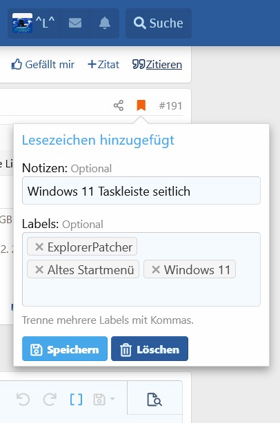 Beispiele aus anderen Foren, was mit ''Lesezeichenrubrik'' (Foren-Lesezeichen) gemeint ist ...